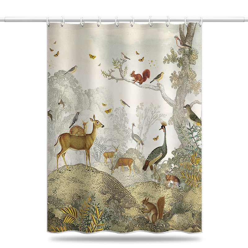 Forest Animals Shower Curtain – Waterproof & Mildew Resistant Polyester Fabric 180×180cm Vintage Nature Style Bathroom Decor