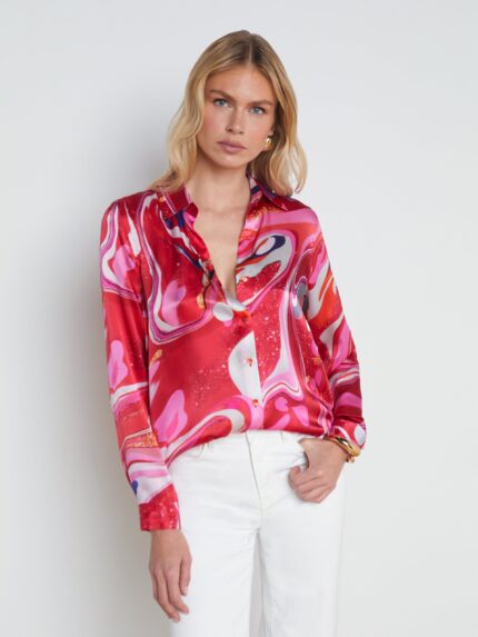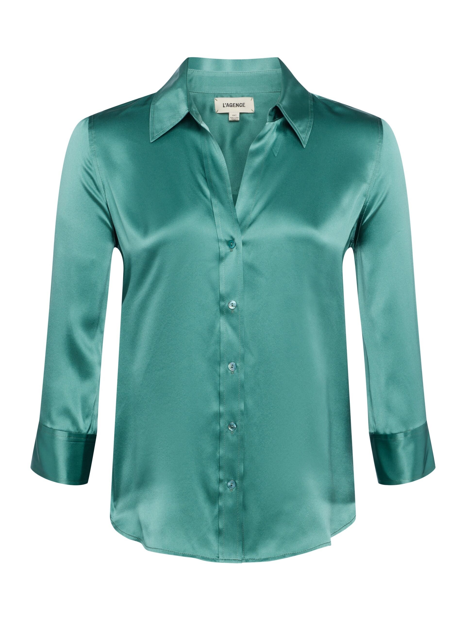 She’s a true L’AGENCE icon and our all-time bestseller. The Dani blouse is the quintessential silk button-down that belongs in every wardrobe. A high-low shirttail hem and three-quarter sleeves create a timeless appeal. Reimagined each season in fresh colorways and prints, there’s a Dani for every occasion. Wear it with a suit or pair with jeans and a heel for a daytime look. Make it evening-ready by pairing with a statement pant.