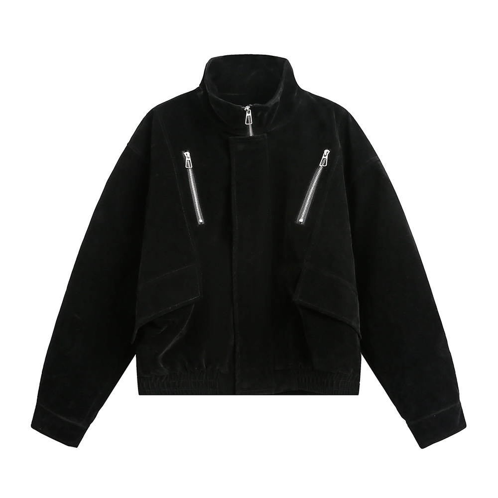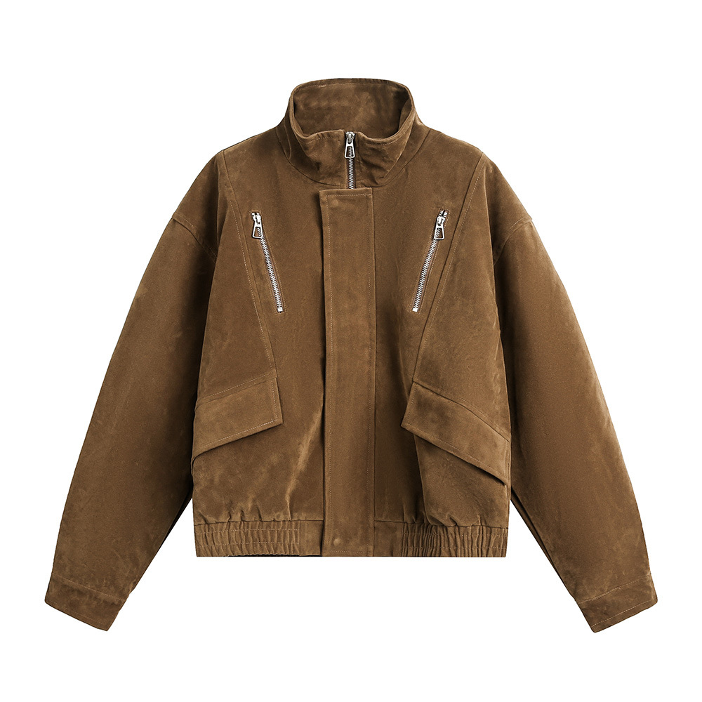 With a loose fit and elastic waistband, the jacket ensures comfort while adding an effortless urban vibe. It pairs easily with jeans, casual trousers, or sweatpants to create a stylish yet laid-back look. The classic black and coffee color options make this jacket a versatile choice for various occasions, making it an essential piece for the fall and winter seasons.