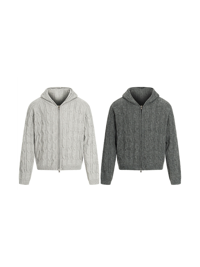 This men’s zip-up thick knit hoodie jacket offers a comfortable and warm wearing experience with its intricate cable knit design and high-quality fabric. Made from a thick wool-blend material, the jacket is soft on the inside, making it perfect for the fall and winter seasons. The beautiful knit pattern not only enhances its stylish appeal but also helps retain body heat, keeping you warm even in cold weather.
