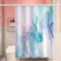 Elevate your bathroom with this abstract art watercolor shower curtain, designed with dreamy shades of blue, purple, and soft golden accents. Its elegant marble-like flow and watercolor texture add a touch of luxury and artistic charm, making it a stunning focal point for any bathroom décor.