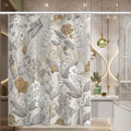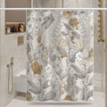 This shower curtain features a modern Nordic botanical design, with a soft beige background adorned with delicate floral and leaf illustrations. The color palette blends neutral gray, white, brown, and golden tones, bringing a sense of calm elegance and natural beauty to your bathroom. Perfect for adding sophistication while blending seamlessly with different interior styles.