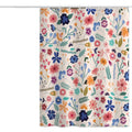 Bring the beauty of a blooming garden into your bathroom with this vibrant floral shower curtain. Featuring a warm beige background adorned with colorful blossoms in shades of blue, pink, purple, orange, and red, this curtain instantly brightens up your space with cheerful charm and natural freshness.