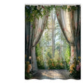 Garden Window Shower Curtain – Waterproof & Mildew Resistant Polyester Bathroom Divider 180×180cm Floral Nature Design