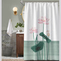 Bring elegance and tranquility into your bathroom with this Lotus Shower Curtain. Featuring delicate pink lotus flowers, lush green leaves, and a dragonfly resting gracefully, the design evokes the calm and beauty of traditional Oriental art. It perfectly blends classic Chinese aesthetics with modern minimalism, making it an exquisite choice for bathroom décor.