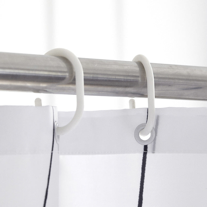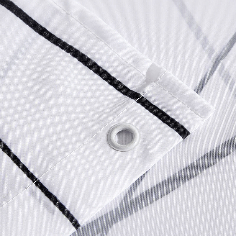 This modern black & white line shower curtain embodies minimalist elegance with a contemporary touch. Featuring a clean white background accented by sleek black lines, it brings a fresh, stylish, and streamlined look to any bathroom. Designed to fit modern, Nordic, minimalist, and industrial interiors, it serves not only as a functional shower curtain but also as a decorative highlight that elevates the overall bathroom ambiance.