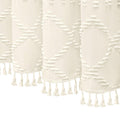 Bring elegance and functionality to your bathroom with this Nordic-inspired shower curtain. Featuring a clean ivory white base with embossed geometric patterns, it offers a minimalist yet sophisticated look that blends seamlessly with various bathroom decors. The decorative tassel trim at the bottom adds a stylish touch, making your shower space both practical and visually appealing.