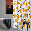 Bring a touch of freshness and vibrancy to your bathroom with this orange fruit print shower curtain. Featuring bright orange fruit patterns with subtle black leaves on a crisp white background, it adds a cheerful Nordic-inspired style that instantly brightens your space and creates a cozy atmosphere for everyday shower time.